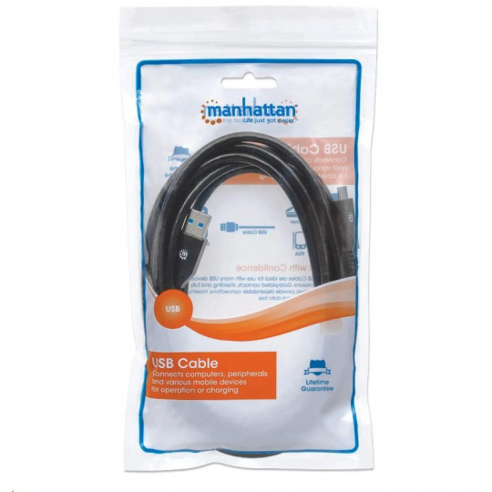 MANHATTAN SuperSpeed kábel USB-C na USB, 3 m, čierny