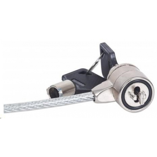 Most electronics theft is a crime of opportunity. It only takes a second to quickly steal an unprotected notebook computer from a desk or table. Millions of dollars of hardware and billions of invaluable data are stolen and unrecovered each year. The Manhattan Mobile Security Lock with its key lock (includes two keys) helps guard notebook computers, flat panel displays, projectors, cameras and other valuable portable electronics from theft.