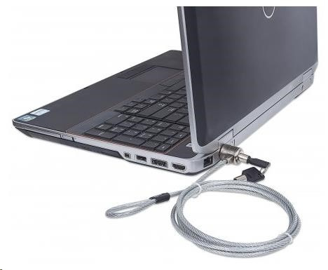 - Fits built-in security slot and secures to a desk or other stationary object