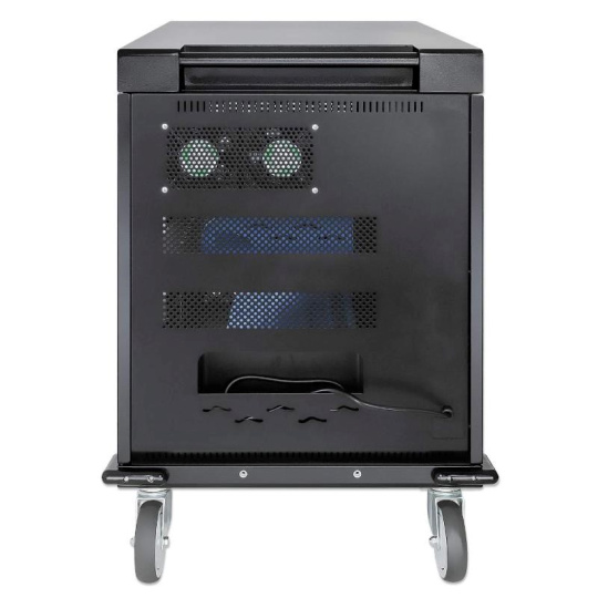 Vstavané AC zásuvky v PDU na zadnej strane jednotky uľahčujú nabíjanie zariadení, ako sú notebooky, tablety, telefóny a mnoho ďalších, pomocou ich napájacích adaptérov alebo stenných nabíjačiek. Správcovia majú pohodlný prístup cez dvierka na zadnej strane jednotky, aby sa mohli pripojiť do zásuviek a viesť káble ku zariadeniam v prednej časti.