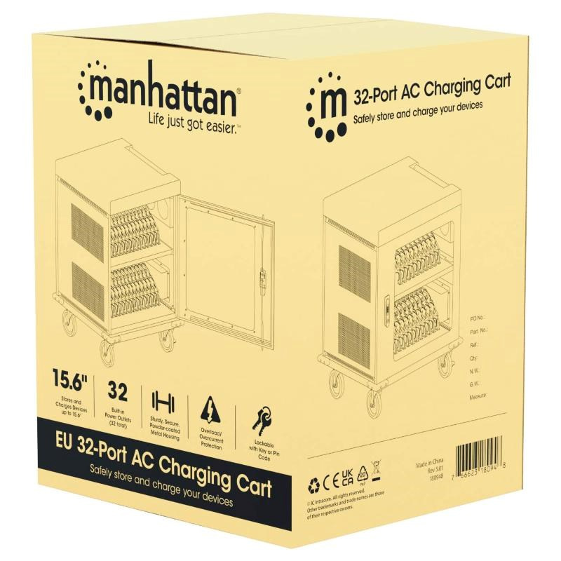 MANHATTAN nabíjecí vozík na notebooky - 32 míst, 32 portů, Až 15,6" - EU Zásuvka
