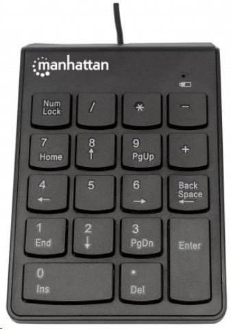 Numerická klávesnica Manhattan zlepšuje zážitok z práce s notebookom najmä pri zadávaní dôležitých číselných údajov. Rozloženie 19 klávesov v plnej veľkosti a technológia nožnicového typu (X-štruktúra) spínača klávesov pomáhajú znižovať hluk pri písaní, zlepšujú odozvu a poskytujú nízkoprofilové klávesy na rýchle a presné zadávanie údajov. Praktické tlačidlo backspace umožňuje rýchle opravy. Funkcia asynchrónneho uzamknutia čísla udržiava režim uzamknutia čísla nezávislý od klávesnice počítača. Používatelia môžu súčasne zadávať písmená z klávesnice počítača a číselné údaje z klávesnice. Vďaka pripojeniu USB, inštalácii plug-and-play a veľmi tenkej a ľahkej konštrukcii sa ľahko balí a cestuje.