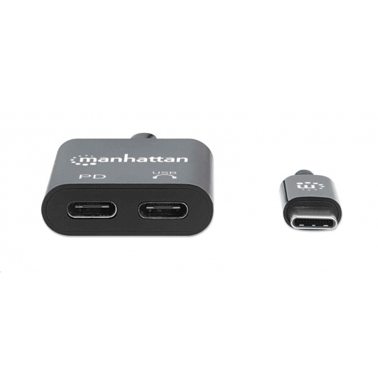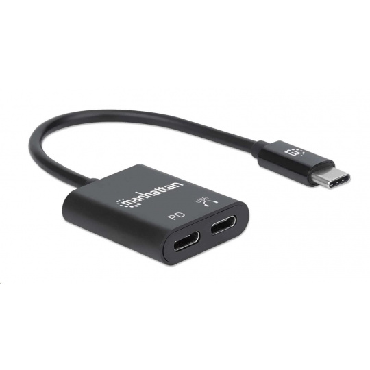 MANHATTAN USB 2.1 zvukový adaptér, USB Type-C na C/F (audio) a C/F (PD) čierny, maloobchodná krabica