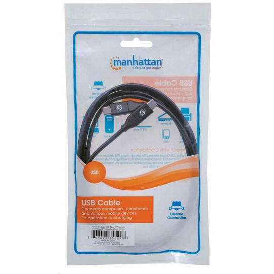 Kábel Manhattan Hi-Speed USB-C ľahko prepojí periférne zariadenie a príslušenstvo USB s periférnym zariadením alebo príslušenstvom USB-C. Tento kábel podporuje rýchly a spoľahlivý prenos dát rýchlosťou až 480 Mb/s v systémoch Windows a Mac a prúd až do 5 A (100 W). Poniklované kontakty, tienenie a plne tvarované pätky s odľahčením ťahu zabezpečujú spoľahlivé pripojenie, maximálnu vodivosť a minimálnu stratu dát pri zníženom rušení EMI.