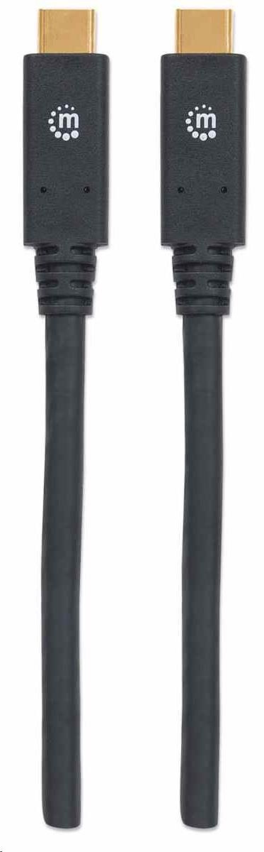 Kábel Manhattan USB-C, USB 3.1, Gen 1, USB-C samec na USB-C samec, 5 Gb/s, 2 m, čierna
