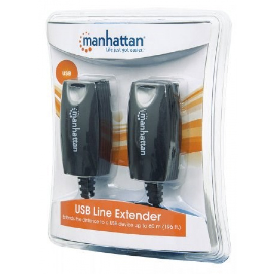 manhattan USB Line Extender ľahko prekonáva vzdialenosť medzi zariadením USB a hostiteľským počítačom bez straty signálu. Miestne a vzdialené jednotky so sieťovým káblom Cat5e (nie je súčasťou balenia) sa môžu pripojiť, spracovať a opakovať signály USB. Miestnu a prijímaciu jednotku možno použiť aj samostatne na prispôsobenie káblov ľubovoľnej dĺžky až do 60 m.).