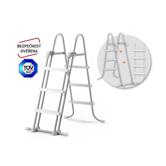 Schodíky majú odnímateľné stupienky - pri ich vybratí zabránite nekontrolovateľnému vstupu detí do bazéna. Maximálna nosnosť 136 kg.