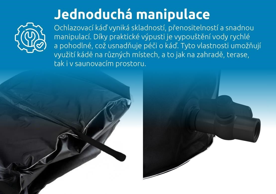 Vďaka odolnosti voči teplotám od -20 °C do 50 °C môžete káď využívať počas celého roka, bez ohľadu na počasie. Praktická vypúšťacia súprava umožňuje rýchle vypustenie vody, zatiaľ čo vonkajší kryt chráni káď pred nečistotami, prachom a hmyzom. Termokryt navyše udržiava optimálnu teplotu vody, minimalizuje tepelné straty a zvyšuje energetickú úspornosť. Tieto vlastnosti spolu s jednoduchou manipuláciou robia z ochladzovacej kádi ideálneho spoločníka na záhradu, terasu či do saunového priestoru.