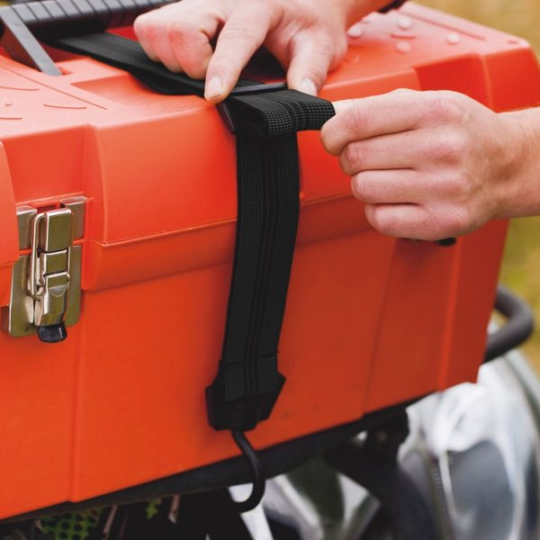 Špeciálny upínací pás s šírkou 40 mm zakončený háčikmi. Nastaviteľná dĺžka od 600~1 200 mm. Otáčacie háčiky pre ľahšie upevnenie nákladu. Maximalná nosnosť 50 kg. Háčiky kryté plastom, zabraňujúce poškodeniu nákladu.