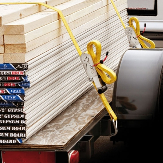 Upínací pás s ráčnou zakončený háčiky.
