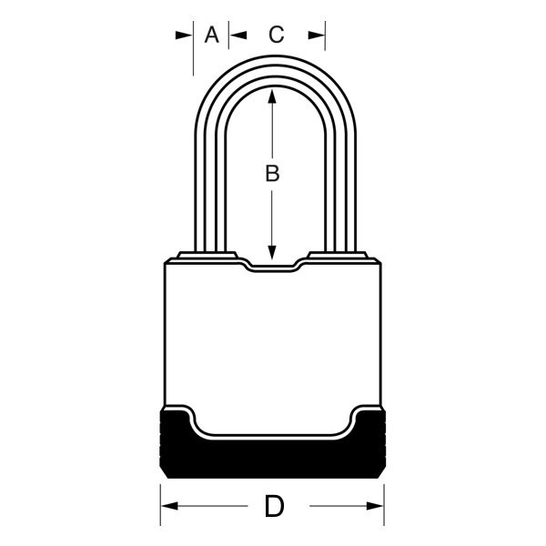 - Visiaci zámok s šírkou 48 mm s telom z laminovanej ocele s povrchovou úpravou odolnou proti poveternostným vplyvom.