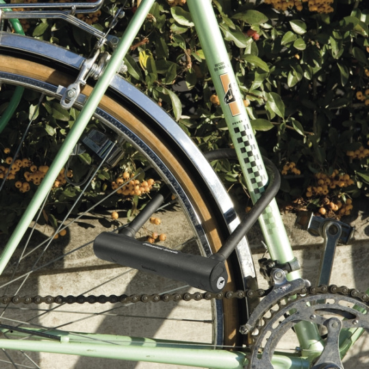 Konštrukcia zámku je vyrobená z odolnej tvrdenej ocele odolnej voči poveternostným vplyvom. Jeho thrm je z kalenej ocele s ôsmouholníkovým profilom o priemere 12 mm. Vinylové ??čeťovanie thrm zabraňuje poškrabaniu laku. Zámok obsahujeDiskovú cylindrickú vložku odolnú proti vyhmataniu a dvojitú západku odolnú proti vypáčeniu. Navyše krytka kľúčovej dierky zabraňuje vniknutiu nečistôt. Súčasťou balenia je držiak pre praktické skladovanie a 2 ks kľúčov.