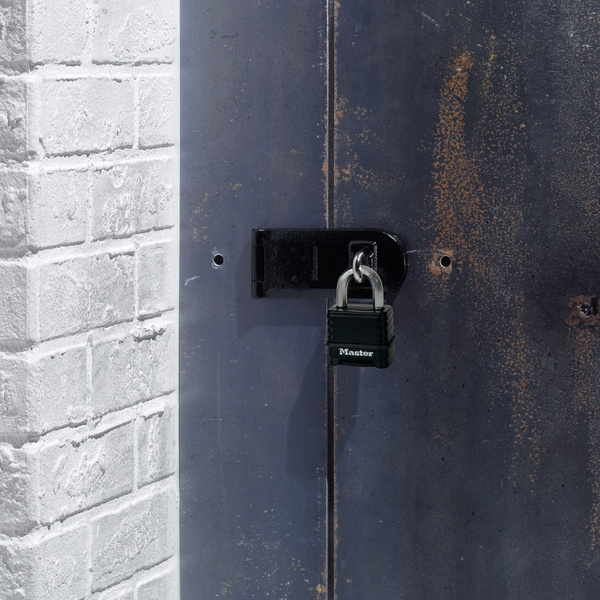 - Visací zámok širky 56 mm s telom z odliatku zinku s povrchom pokrytým termoplastom odolným voči poveternostným vplyvom.