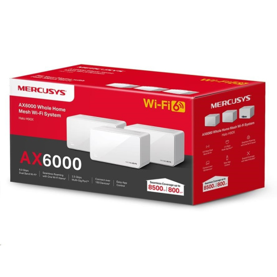 MERCUSYS Halo H90X(3-pack) WiFi6 Mesh (AX6000,2,4GHz/5GHz,1x2,5GbELAN/WAN,2xGbELAN/WAN)