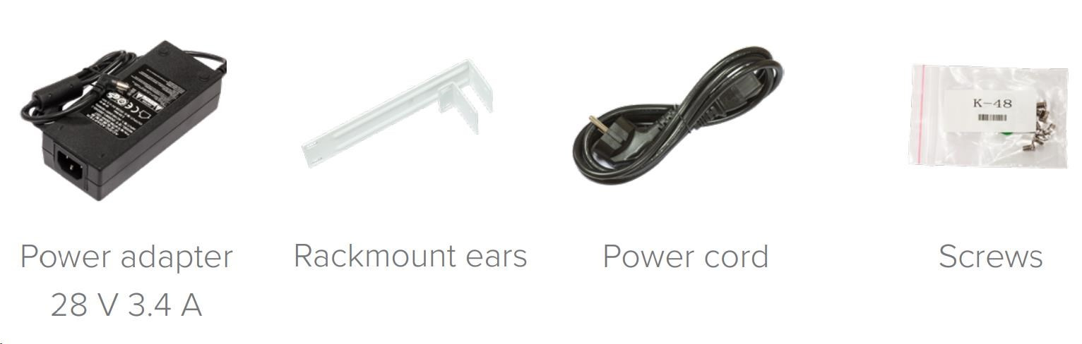 prepínač podporuje aktívne PoE podľa normy 802.3af/at, takže je pasívny, rozpočet PoE je 67 W, napájací adaptér 230 V je súčasťou dodávky (28 V/3,4 A). Prepínač je možné napájať aj prostredníctvom dvoch konektorov DC na zadnej strane (48 V-57 V a 18 V-27 V). Ak teda budete napájať prepínač cez DC vstup a vyžadujete aktívne PoE podľa 802.3af/at, je potrebné pripojiť jednosmerné napätie s nominálnou hodnotou 48-57 V ku konektoru určenému na tento účel.