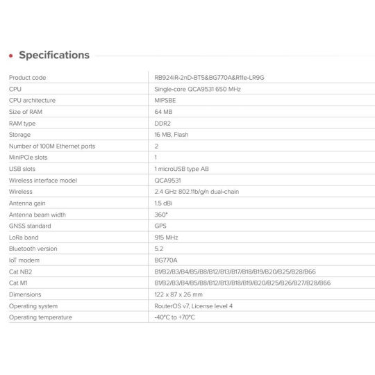 MikroTik RB924iR-2nD-BT5&BG770A&R11e-LR9G IoT Gateway KNOT LR9G kit