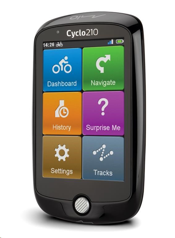 Navigácia na bicykel Cyclo™ 210 má intuitívne rozhranie a je používateľsky komfortná, takže počas niekoľkých minút budete môcť vyraziť na cesty na bicykli.