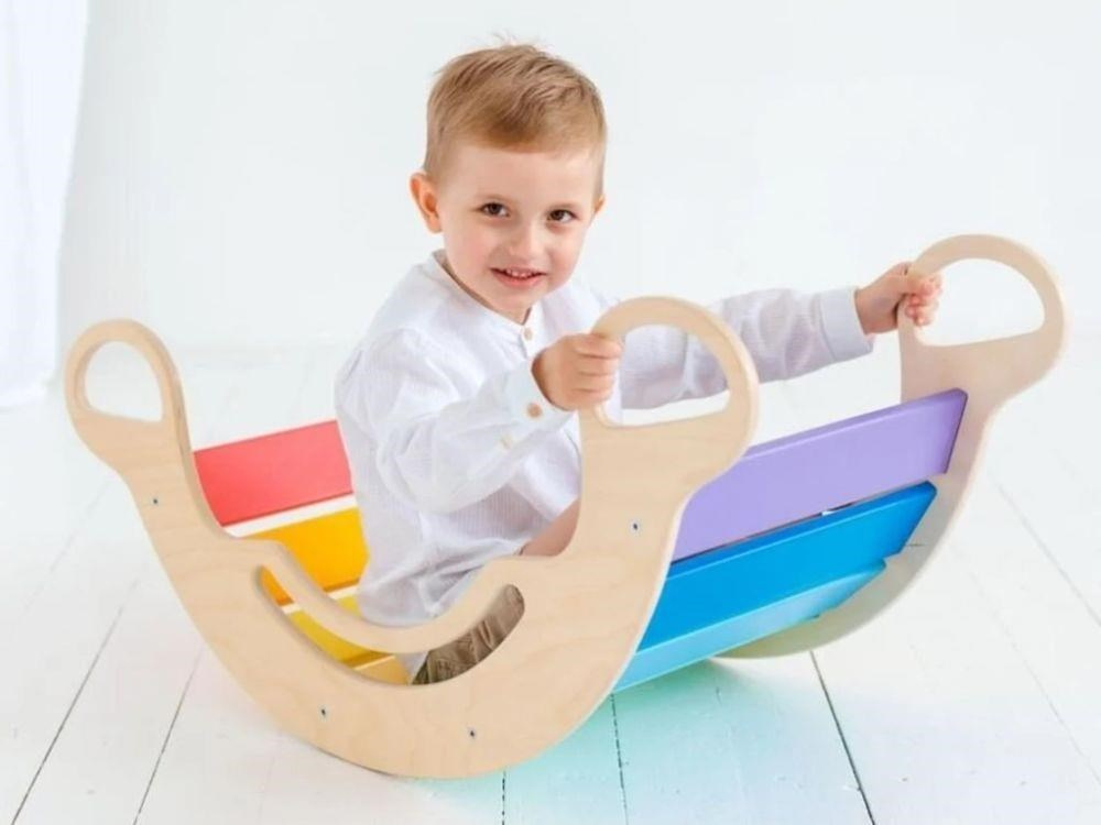 # Drevené detské Montessori hojdačka smile 6in1 vás prekvapí svojim dizajnom aj multifunkčnosťou. Hojdačka bude každý deň svojím širokým úsmevom lákať deti k príjemnému hojdaniu aj k zábavnej hre. Jej využitie je všestranné, môže byť hojdačkou, šmýkačkou, lezeckou, skrýšou aj sedačkou, pri doplnení obojstranným doskou aj detským nábytkom. Obojstranná doska nie je súčasťou hojdačky. Vďaka sviežim fresh farbám rozžiari každý detský interiér. Vyrobená je z tých najkvalitnejších materiálov, ručne dôkladne opracovaná a lakovaná farbami s atestom. Montessori hojdačka smile je širšia ako naše Montessori hojdačky 5in1, preto k tejto hojdačke ponúkame aj špeciálnu obojstrannú dosku, ktorá je doplnkom ku hojdačkám smile. Vďaka doske ľahko premeníte hojdačku smile na detský stolík. Obojstranná doska nie je súčasťou hojdačky, na využitie hojdačky ako nábytku je nutné dosku samostatne dokúpiť.