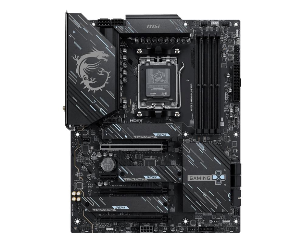 X870E GAMING PLUS WIFI je navrhnutý s odolnými komponentmi na zabezpečenie skvelého herného zážitku. Navrhnutý s Wi-Fi 7 a 5G LAN, vysokorýchlostnými USB4, PCIe 5.0 riešeniami, doplnkovým PCIe napájaním a exkluzívnymi funkciami EZ DIY, je pripravený na 24/7 neprerušované hranie procesorov AMD Ryzen 9000 série.