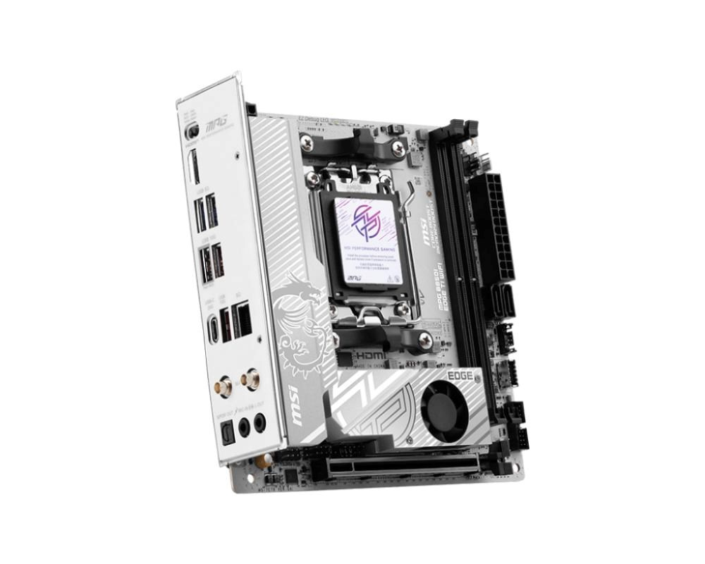 MPG B850I EDGE TI WIFI je pokrytá striebornobledou farebnou schémou pre milovníkov bielych PC zostáv, ktorí chcú ukázať svoju odlišnú identitu. Je tiež výkonná vďaka svojmu skutočnému riešeniu Wi-Fi 7, 5G LAN a najnovšej kompatibilite PCIe 5.0, doplnkovému napájaniu PCIe, a je to najlepšia biela téma B850 ITX základná doska pre procesory AMD Ryzen™ 9000 série.