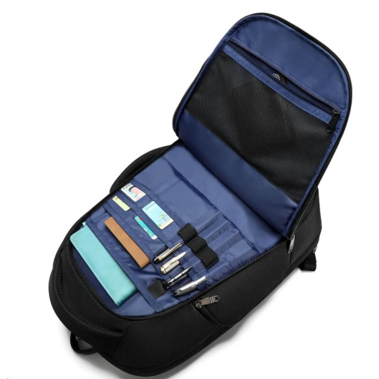 MYBALO ASTON Perfektní volba pro minimalisty s dobrým vkusem 6 ikon: - Nejtenčí batoh - Elegantní - Kapsa na notebook do 15,6" - Kapsa na tablet do 9" - Otevírání o 180 stupňů - USB a USB-C port - Drží tvar - Voděodolný - Skryté kapsy Elegantní a minimalistický Jedná se o velmi elegantní a minimalistický batoh. S tímto parťákem neuděláte chybu při běžném nošení do města, ani na důležité schůzce. Tenký batoh MYBALO Aston je batoh s vůbec nejmenší hloubkou z naší nabídky. Díky tomu působí elegantně a minimalisticky, ale i přesto se do něj vejdou všechny vaše nezbytnosti. Kvalitní voděodolný materiál, dlouhá životnost Kvalitní umělá kůže zajišťuje trvanlivost a odolnost batohu proti vodě a opotřebení. MYBALO Aston tak bude vaším společníkem opravdu dlouho. Drží tvar Batoh si zachovává svůj tvar také v případě, že jej budete mít úplně prázdný. Vestavěný USB a USB-C port Nabíjejte svá elektronická zařízení kdekoli a kdykoli díky vestavěnému USB a USB-C portu. Popruh k uchycení na kufr Cestujte pohodlně. Kdykoli chcete mít volná záda, jednoduše připevněte batoh na rukojeť svého kufru. Pohodlné polstrování Užijte si komfortní nošení díky kvalitnímu a prodyšnému polstrování ramenních popruhů a zádové části. Další praktické kapsy Zorganizujte si pohodlně a snadno své věci díky množství vychytaných kapes. Skryté kapsy V zádové části a na ramenním popruhu najdete skryté kapsy pro bezpečné uložení cenností. Vnitřní kapsy Vnitřní kapsy slouží pro snadnou organizaci všech vašich věcí. Přední kapsa Přední kapsa je určena pro věci, které chcete mít rychle a snadno po ruce. Parametry: - Rozměry: 46 x 30 x 9 cm - Objem: 11 l - Hmotnost: 1,19 kg - Kapsa na notebook: Ano (do vel. 15,6") - Kapsa na tablet: Ano (do vel. 9") - USB port: Ano - Voděodolnost: Ano - Hlavní materiál: Ekokůže + Polyester - Podšívka: Polyester - Barva: Černá.