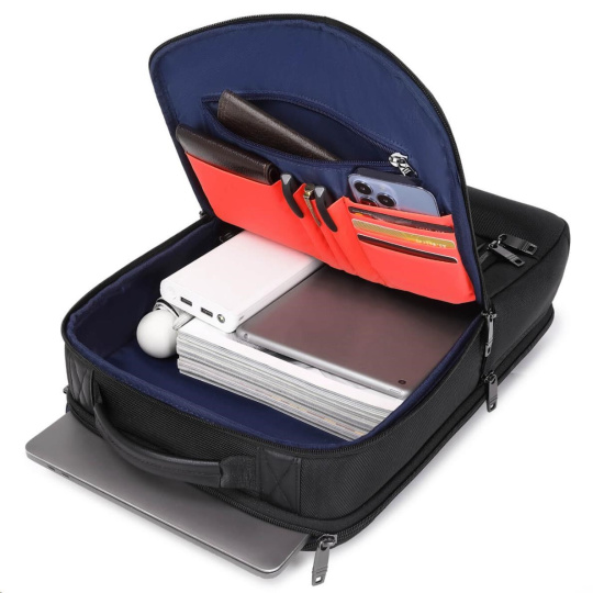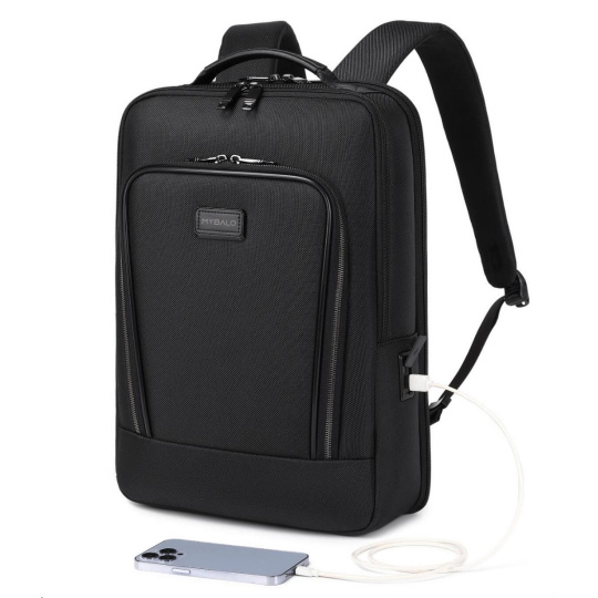 MYBALO ASTON Perfektní volba pro minimalisty s dobrým vkusem 6 ikon: - Nejtenčí batoh - Elegantní - Kapsa na notebook do 15,6" - Kapsa na tablet do 9" - Otevírání o 180 stupňů - USB a USB-C port - Drží tvar - Voděodolný - Skryté kapsy Elegantní a minimalistický Jedná se o velmi elegantní a minimalistický batoh. S tímto parťákem neuděláte chybu při běžném nošení do města, ani na důležité schůzce. Tenký batoh MYBALO Aston je batoh s vůbec nejmenší hloubkou z naší nabídky. Díky tomu působí elegantně a minimalisticky, ale i přesto se do něj vejdou všechny vaše nezbytnosti. Kvalitní voděodolný materiál, dlouhá životnost Kvalitní umělá kůže zajišťuje trvanlivost a odolnost batohu proti vodě a opotřebení. MYBALO Aston tak bude vaším společníkem opravdu dlouho. Drží tvar Batoh si zachovává svůj tvar také v případě, že jej budete mít úplně prázdný. Vestavěný USB a USB-C port Nabíjejte svá elektronická zařízení kdekoli a kdykoli díky vestavěnému USB a USB-C portu. Popruh k uchycení na kufr Cestujte pohodlně. Kdykoli chcete mít volná záda, jednoduše připevněte batoh na rukojeť svého kufru. Pohodlné polstrování Užijte si komfortní nošení díky kvalitnímu a prodyšnému polstrování ramenních popruhů a zádové části. Další praktické kapsy Zorganizujte si pohodlně a snadno své věci díky množství vychytaných kapes. Skryté kapsy V zádové části a na ramenním popruhu najdete skryté kapsy pro bezpečné uložení cenností. Vnitřní kapsy Vnitřní kapsy slouží pro snadnou organizaci všech vašich věcí. Přední kapsa Přední kapsa je určena pro věci, které chcete mít rychle a snadno po ruce. Parametry: - Rozměry: 46 x 30 x 9 cm - Objem: 11 l - Hmotnost: 1,19 kg - Kapsa na notebook: Ano (do vel. 15,6") - Kapsa na tablet: Ano (do vel. 9") - USB port: Ano - Voděodolnost: Ano - Hlavní materiál: Ekokůže + Polyester - Podšívka: Polyester - Barva: Černá.