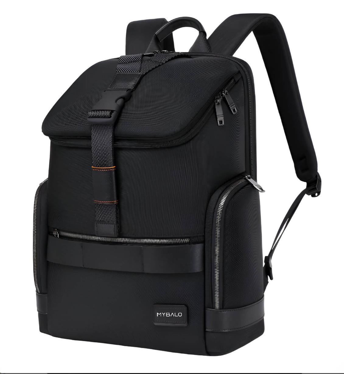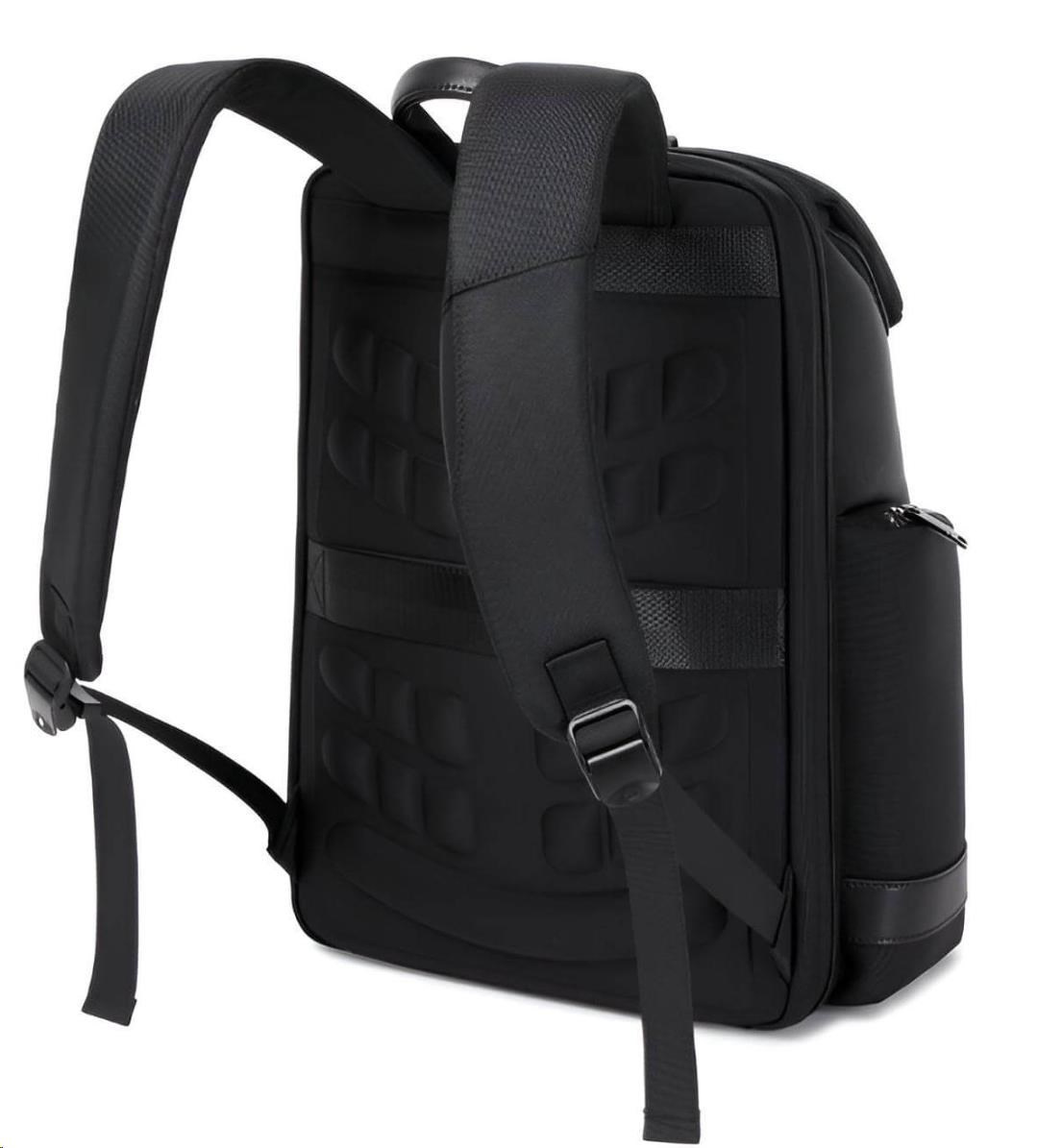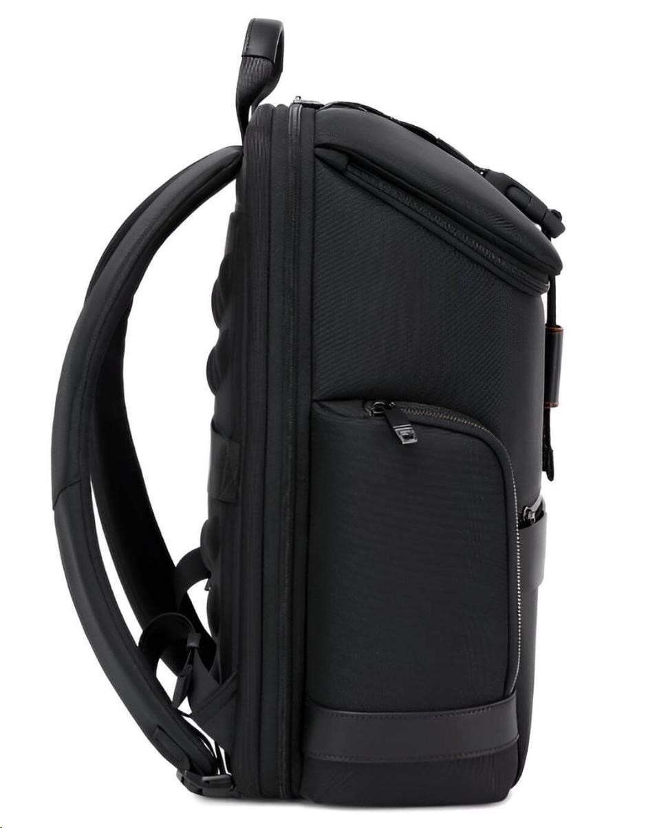 MYBALO ASTON Perfektní volba pro minimalisty s dobrým vkusem  6 ikon: - Nejtenčí batoh - Elegantní - Kapsa na notebook do 15,6" - Kapsa na tablet do 9" - Otevírání o 180 stupňů - USB a USB-C port - Drží tvar - Voděodolný - Skryté kapsy  Elegantní a minimalistický Jedná se o velmi elegantní a minimalistický batoh. S tímto parťákem neuděláte chybu při běžném nošení do města, ani na důležité schůzce.  Tenký batoh MYBALO Aston je batoh s vůbec nejmenší hloubkou z naší nabídky. Díky tomu působí elegantně a minimalisticky, ale i přesto se do něj vejdou všechny vaše nezbytnosti.  Kvalitní voděodolný materiál, dlouhá životnost Kvalitní umělá kůže zajišťuje trvanlivost a odolnost batohu proti vodě a opotřebení. MYBALO Aston tak bude vaším společníkem opravdu dlouho.  Drží tvar Batoh si zachovává svůj tvar také v případě, že jej budete mít úplně prázdný.  Vestavěný USB a USB-C port Nabíjejte svá elektronická zařízení kdekoli a kdykoli díky vestavěnému USB a USB-C portu.  Popruh k uchycení na kufr Cestujte pohodlně. Kdykoli chcete mít volná záda, jednoduše připevněte batoh na rukojeť svého kufru.  Pohodlné polstrování Užijte si komfortní nošení díky kvalitnímu a prodyšnému polstrování ramenních popruhů a zádové části.  Další praktické kapsy Zorganizujte si pohodlně a snadno své věci díky množství vychytaných kapes.  Skryté kapsy V zádové části a na ramenním popruhu najdete skryté kapsy pro bezpečné uložení cenností.  Vnitřní kapsy Vnitřní kapsy slouží pro snadnou organizaci všech vašich věcí.  Přední kapsa Přední kapsa je určena pro věci, které chcete mít rychle a snadno po ruce.  Parametry: - Rozměry: 46 x 30 x 9 cm - Objem: 11 l - Hmotnost: 1,19 kg - Kapsa na notebook: Ano (do vel. 15,6") - Kapsa na tablet: Ano (do vel. 9") - USB port: Ano - Voděodolnost: Ano - Hlavní materiál: Ekokůže + Polyester - Podšívka: Polyester - Barva: Černá