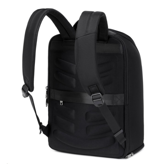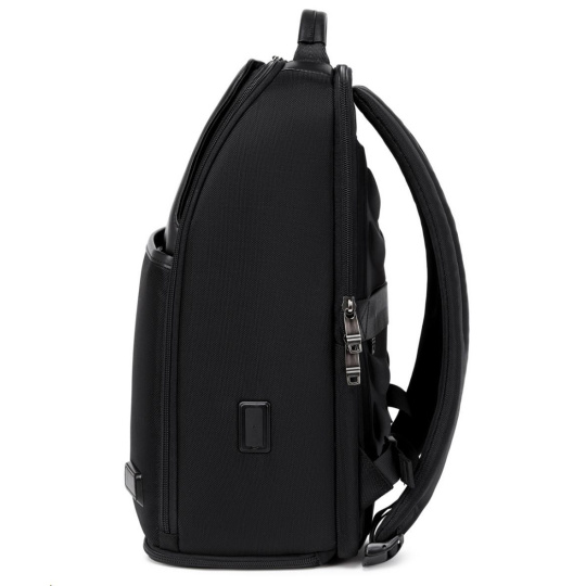 MYBALO ASTON Perfektní volba pro minimalisty s dobrým vkusem  6 ikon: - Nejtenčí batoh - Elegantní - Kapsa na notebook do 15,6" - Kapsa na tablet do 9" - Otevírání o 180 stupňů - USB a USB-C port - Drží tvar - Voděodolný - Skryté kapsy  Elegantní a minimalistický Jedná se o velmi elegantní a minimalistický batoh. S tímto parťákem neuděláte chybu při běžném nošení do města, ani na důležité schůzce.  Tenký batoh MYBALO Aston je batoh s vůbec nejmenší hloubkou z naší nabídky. Díky tomu působí elegantně a minimalisticky, ale i přesto se do něj vejdou všechny vaše nezbytnosti.  Kvalitní voděodolný materiál, dlouhá životnost Kvalitní umělá kůže zajišťuje trvanlivost a odolnost batohu proti vodě a opotřebení. MYBALO Aston tak bude vaším společníkem opravdu dlouho.  Drží tvar Batoh si zachovává svůj tvar také v případě, že jej budete mít úplně prázdný.  Vestavěný USB a USB-C port Nabíjejte svá elektronická zařízení kdekoli a kdykoli díky vestavěnému USB a USB-C portu.  Popruh k uchycení na kufr Cestujte pohodlně. Kdykoli chcete mít volná záda, jednoduše připevněte batoh na rukojeť svého kufru.  Pohodlné polstrování Užijte si komfortní nošení díky kvalitnímu a prodyšnému polstrování ramenních popruhů a zádové části.  Další praktické kapsy Zorganizujte si pohodlně a snadno své věci díky množství vychytaných kapes.  Skryté kapsy V zádové části a na ramenním popruhu najdete skryté kapsy pro bezpečné uložení cenností.  Vnitřní kapsy Vnitřní kapsy slouží pro snadnou organizaci všech vašich věcí.  Přední kapsa Přední kapsa je určena pro věci, které chcete mít rychle a snadno po ruce.  Parametry: - Rozměry: 46 x 30 x 9 cm - Objem: 11 l - Hmotnost: 1,19 kg - Kapsa na notebook: Ano (do vel. 15,6") - Kapsa na tablet: Ano (do vel. 9") - USB port: Ano - Voděodolnost: Ano - Hlavní materiál: Ekokůže + Polyester - Podšívka: Polyester - Barva: Černá