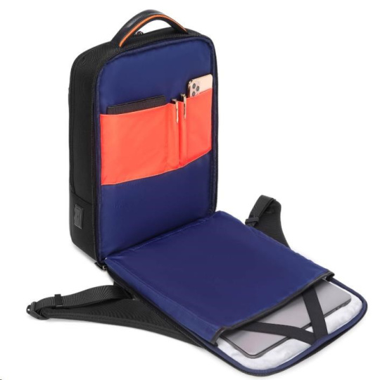 Batoh MYBALO Milano je vybavený kapsou s možnosťou otvárania až o 180 stupňov. Ku všetkým uloženým veciam sa tak dostanete prehľadne a ľahko.