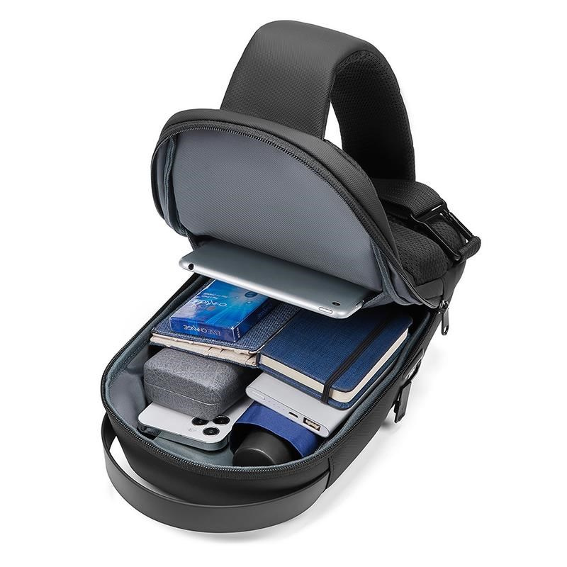 MYBALO Walker je kompaktny batoh cez rameno, ideálny na voľný čas. Ponúka úložný priestor o objemu 5 l, priehradku na tablet do uhlopriečky 9", USB port na nabíjanie elektronických zariadení kdekoľvek a kedykoľvek, skrytú kapsu na cennosti a praktické vnútorné priehradky. Pohodlné nosenie zabezpečuje polstrovaný popruh a chrbtová časť. Popruh je navyše nastaviteľný a odnímateľný. Batoh je vyrobený z nepremokavého kvalitného materiálu s dlhou životnosťou. MYBALO Walker je skvelou voľbou na voľný čas. Hodí sa pre pánov aj dámy a je veľmi univerzálny.