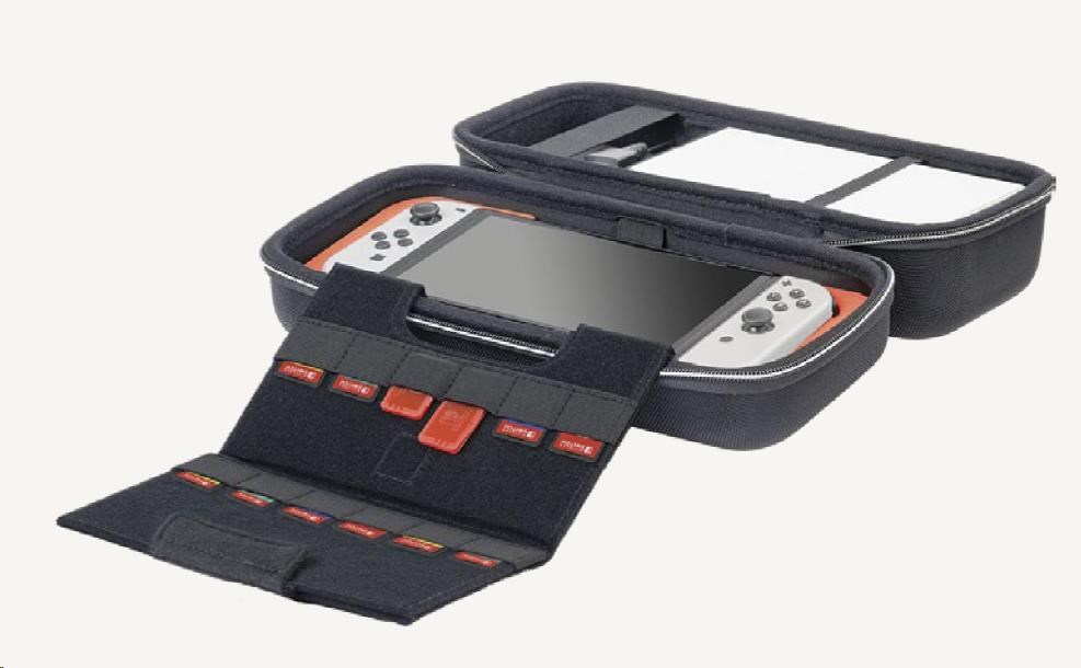 • Luxusná cestovná taška na uloženie hernej konzoly Nintendo Switch 2 vrátane všetkého príslušenstva. Kompatibilná tiež s konzolami Switch a Switch – OLED Model, vrátane ich príslušenstva.