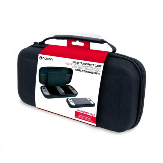 V tomto pevném prepravnom puzdre od spoločnosti Nacon môžete bezpečne a bez obáv prepravovať svoju hernú konzolu Nintendo Switch 2. Polstrovaný oddelovač uprostred puzdra sa postará o to, aby obrazovka konzoly neutrpela pri preprave ani škrabnutie, a na pásku na suchý zips držiacom konzolu na mieste nájdete navyše tri kapsičky na uloženie kariet s vašimi obľúbenými hrami. V sieťovanej kapsičke v hornej časti puzdra sa potom nachádza dostatok priestoru pre nevyhnutné príslušenstvo. Súčasťou puzdra je tiež vyberateľné medzidno pre konzolu Switch, Switch Lite a Switch – OLED Model.