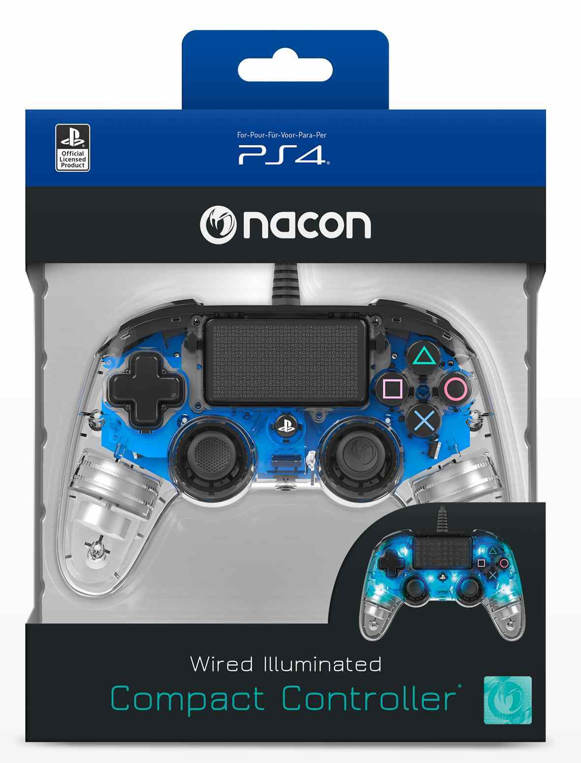 Nacon Wired Compact Controller - ovladač pro PlayStation 4 - průhledný modrý