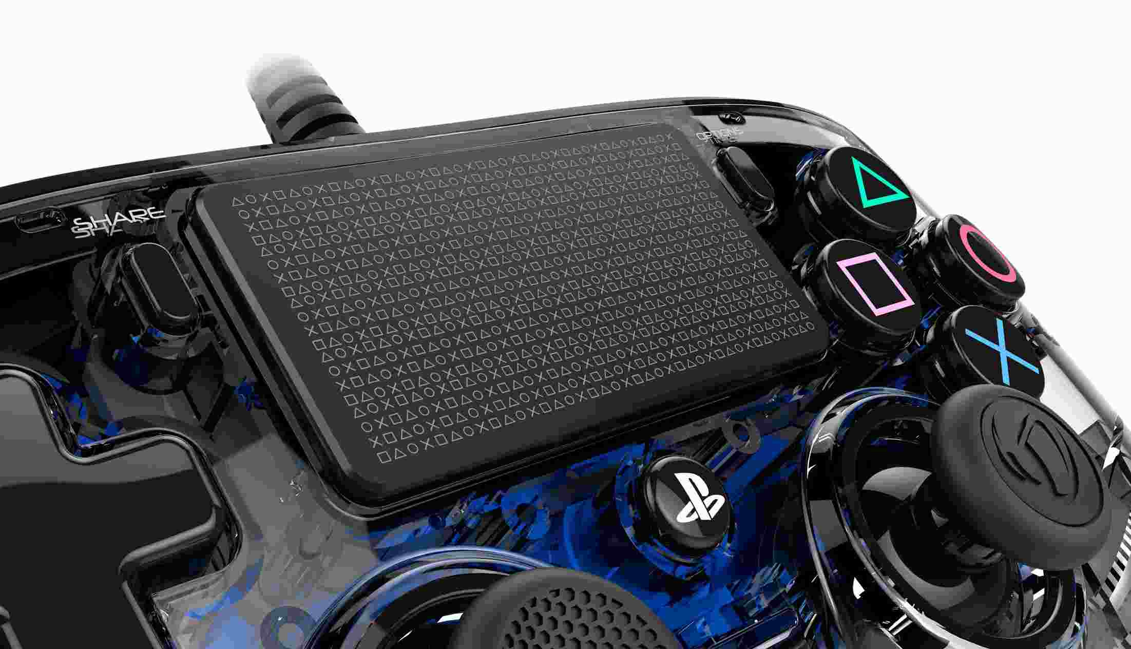 Káblový podsvietený kompaktný ovládač od spoločnosti Nacon ponúka pôsobivé množstvo funkcií, ako je dotykový panel, konektor pre slúchadlá s mikrofónom alebo dvojica vibračných motorov. Vďaka ergonomickému dizajnu sa ovládač pohodlne drží pre hráčov všetkých vekových kategórií, a to aj počas hodín hrania. V prípade podsvieteného modelu s plne priehľadným povrchom