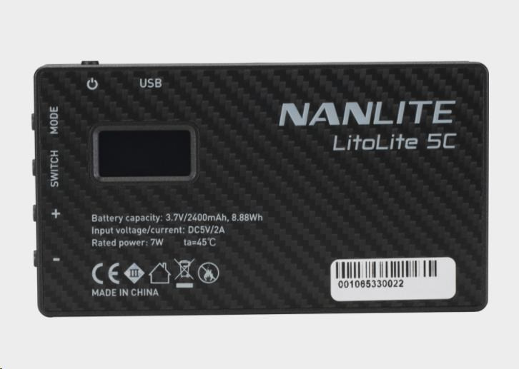 LitoLite 5C je kompaktný LED svetelný panel so zabudovanou Li-Ion batériou, USB-C nabíjaním, úžasným jasom, nastaviteľnou teplotou farieb od 2700K do 7500K s farebným posunom zo zelenej na purpurovú, 360° reguláciou odtieňa so 100 úrovňami nastavenia sýtosti farieb a 15 predprogramovanými, nastaviteľnými špeciálnymi svetelnými efektmi.