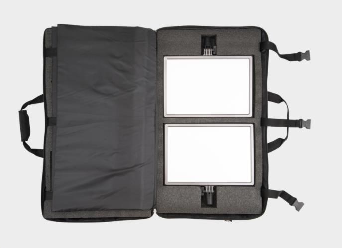 Sada 2 LED svetelných panelov Nanlite LumiPad 25. Sada obsahuje aj 2 statívy, 2 rukoväte a puzdro na prenášanie.