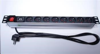 napájací panel PremiumCord 1U pre 19" rack, 8x230V, prepäťová ochrana, 2m kábel, prepínač