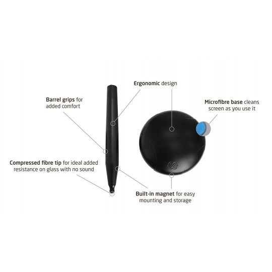 NEC SST Pen-Eraser Kit - Sada pera a gumy pre veľkoformátové dotykové displeje NEC ShadowSense Popis Zanechajte svoju stopu Sada pera a gumy NEC ShadowSense™ je špeciálne navrhnutá tak, aby vám poskytla pocit, ktorý je najbližší písaniu na papier, ale bez batérií alebo elektroniky, o ktorú sa musíte starať. Súprava kombinuje výkonnostné výhody aktívneho stylusu s jednoduchosťou pasívneho systému. Integrované magnety v pere aj v gume umožňujú jednoduchú montáž na displej NEC ShadowSense Touch a pomáhajú udržiavať čistotu a neporiadok v konferenčnej miestnosti. Výhody ?Súprava bez problémov spolupracuje s technológiou ShadowSense Touch a ponúka intuitívne písanie ako na papieri. ?Presné pero okamžite eliminuje neúmyselné spojovacie ťahy, zatiaľ čo presná guma eliminuje náhodné vymazanie. ?Využívajte výhody automatického rozpoznávania interakcií, či už ide o dotykové gestá, písanie perom alebo uľahčenie. ?Vďaka natívnej podpore technológie ShadowSense Touch pre atrament systému Windows Ink možno funkcie používať v aplikáciách PowerPoint, OneNote a mnohých ďalších...