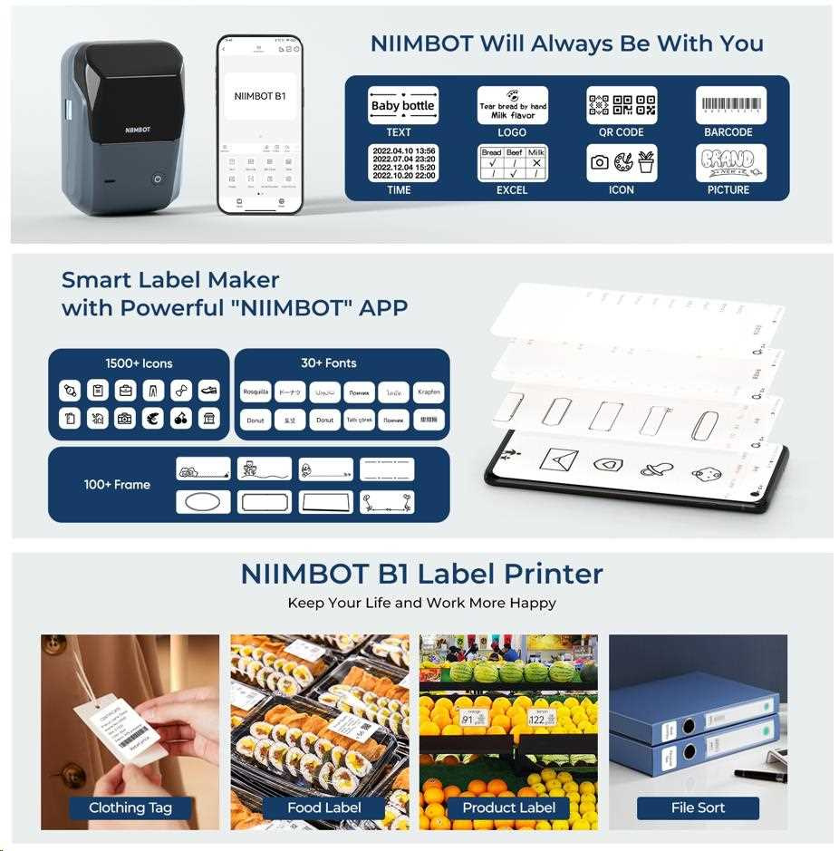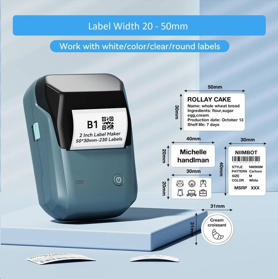 NIIMBOT B1 je tlačiareň etikiet, ktorá kombinuje výkon, pohodlie a kvalitu. S jej jednoduchou obsluhou a vynikajúcimi funkciami vás prekvapí, aké rýchle a jednoduché je vytváranie profesionálnych etikiet.