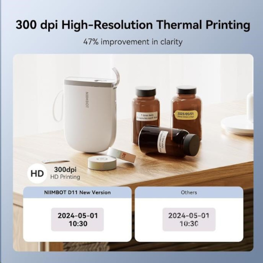 NIIMBOT D11 je tlačiareň štítkov, ktorá kombinuje výkon, pohodlie a kvalitu. So svojou jednoduchou obsluhou a výnimočnými funkciami vás prekvapí, aký rýchlo a jednoducho môžete vytvárať profesionálne štítky.
