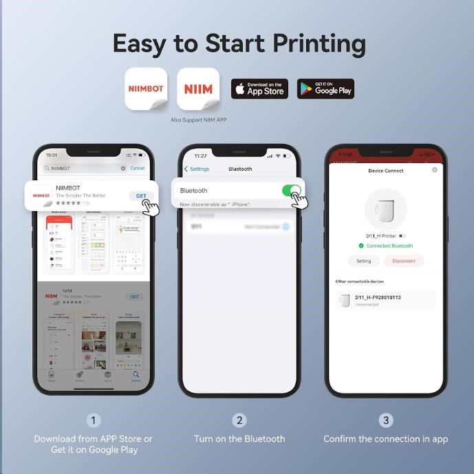 NIIMBOT D11 je tlačiareň štítkov, ktorá kombinuje výkon, pohodlie a kvalitu. So svojou jednoduchou obsluhou a výnimočnými funkciami vás prekvapí, aký rýchlo a jednoducho môžete vytvárať profesionálne štítky.