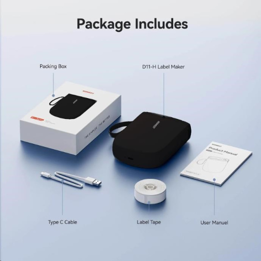Tlačiareň D11-H ponúka vyšší nabíjací výkon, takže jej 1500mAh batéria je pripravená už za 1-2 hodiny. Tlačiareň vydrží v neprerušenom prevádzke až 5 hodín. Nový Bluetooth modul podporuje pripojenie až 6 zariadení a je tak ideálny pre zdieľanie v domácnosti alebo kancelárii. Novinkou je, že tlačiareň ponúka rozlíšenie 300 dpi pre skutočne verný tlač obrázkov. D11-H tiež vie pri zakladaní novej pásky „nasávať“ vyčnievajúci prvý štítok pre 100% bezodpadový prevádzok.