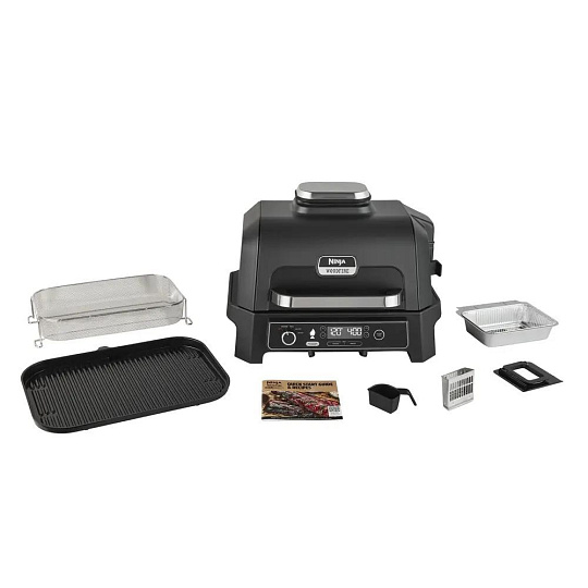 Ninja OG850EU Woodfire Pro XL, černý, elektrický gril a udírna, technologie Woodfire, teplotní sonda, 4v1 Airfryer