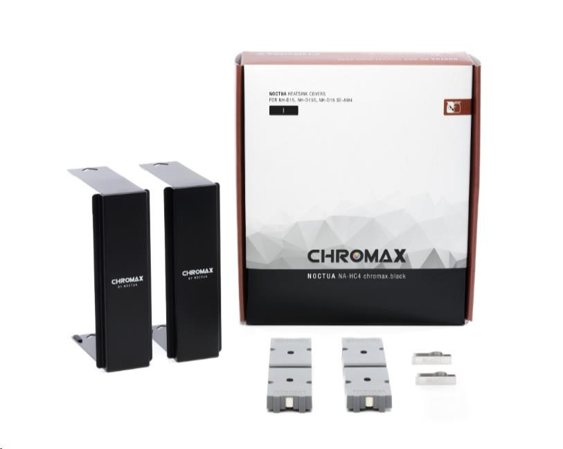Kryty chladiča NA-HC4 chromax.black sú doplnkovým príslušenstvom pre oceňované chladiče CPU NH-D15, NH-D15S a NH-D15 SE-AM4 od spoločnosti Noctua. Vyrobené z vysoko kvalitného hliníka s čiernym práškovým nástrekom, umožňujú používateľom dodať chladiču elegantný, nenápadný vzhľad, ktorý sa skvele hodí do celočiernych zostáv a dobre ladí s mnohými ďalšími obľúbenými farebnými schémami. Vďaka jednoduchej a priamočiarej inštalácii trvá zmena vzhľadu chladiča NH-D15(S) len pár minút a nevyžaduje ani jeho demontáž z procesora. V kombinácii s ventilátormi chromax.black.swap edície NF-A15 vám dva kryty NA-HC4 chromax.black dávajú možnosť zmeniť váš NH-D15(S) na celý čierny výkonný stroj, ktorý vyzerá rovnako skvelo, ako chladí.
