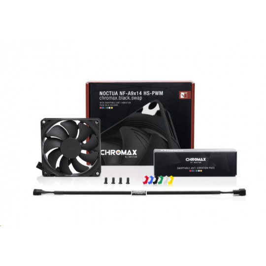 Rad NF-A9x14 sa zaslúžila o poprednú voľbu pri výbere slim 92mm ventilátorov množstvom ocenení a odporúčaní od technických časopisov a stránok po celom svete. NF-A9x14 HS-PWM chromax.black.swap kombinuje tichý chod tejto rady a elegantný celokoruný dizajn rady chromax.black. Balenie obsahuje tiež súpravu protivibračných podložiek pre tých, ktorí si radi prispôsobia svoj stroj farebne. Kvalitu chodu a spokojnosť tiež zabezpečuje SSO2 ložisko, viac ako 150000 hodín MTTF a 6 rokov záruky od výrobcu.