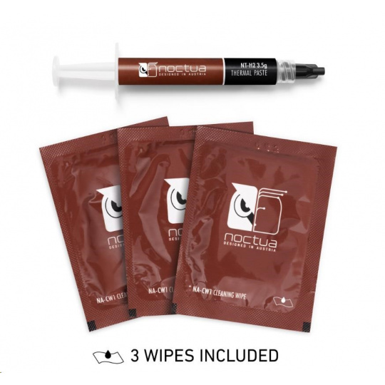 NT-H2 je ďalej vylepšená druhá generácia oceneného hybridného tepelného vodivého materiálu Noctua. Kombináciou overených vlastností ikonickej pasty NT-H1, vynikajúcej ľahkosti použitia a legendárnej dlhodobej stability s novým, jemne dolaďovaným zložením mikročastíc pre ešte lepší tepelný výkon je NT-H2 pasta pre nadšencov s najvyššími nárokmi. Či už ide o vzduchové alebo vodné chladenie, aplikácie na CPU alebo GPU, pretaktovanie alebo tiché systémy: NT-H2 bude dôsledne poskytovať vynikajúce výsledky a vďaka priloženým čistiacim obrúskom sa rovnako ľahko odstraňuje ako nanáša.