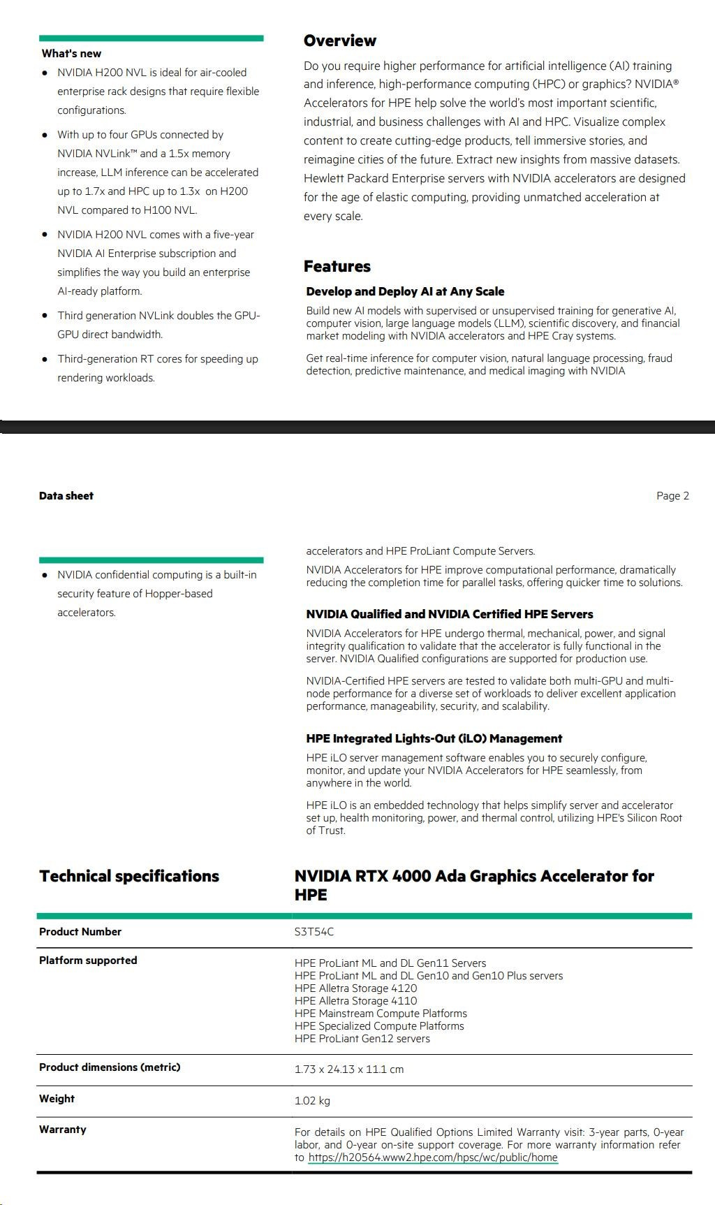 HPE iLO server management software enables you to securely configure, monitor, and update your NVIDIA Accelerators for HPE seamlessly, from anywhere in the world. HPE iLO is an embedded technology that helps simplify server and accelerator set up, health monitoring, power, and thermal control, utilizing HPE's Silicon Root of Trust.