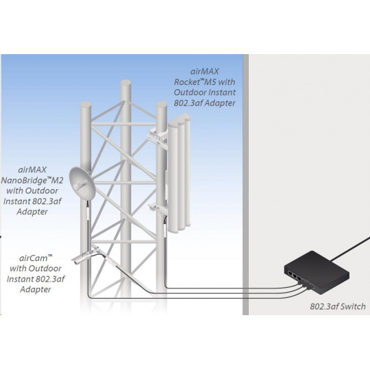 pomocou tohto konvertora je možné napájať jednotky UBNT pomocou aktívneho PoE prepínača podľa 802.3af (48 V). Prevodník komunikuje so spínačom podľa 802.3af a výstup už pasívne PoE, v tomto prípade 18V/0,7A. Môže sa používať so všetkými jednotkami Ubiquity (je kompatibilný aj s routerboardmi Mikrotik).