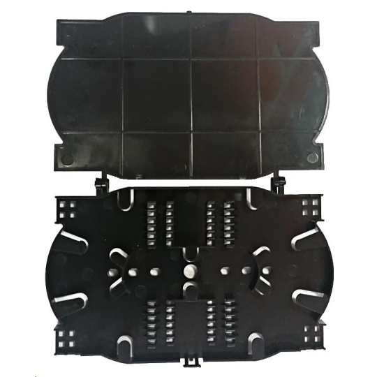- Optická kazeta s uzáverom a hrebeňmi na 24 zvarov v 2 úrovniach, rozmery: 155x105x12mm