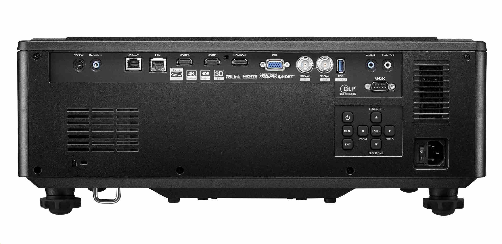 | Vstupy | 1 x HDBaseT, 1 x HDMI 2.0, 1 x HDMI 1.4a 3D podpora, 1 x VGA, 1 x 3D sync, 1 x Audio 3.5mm |